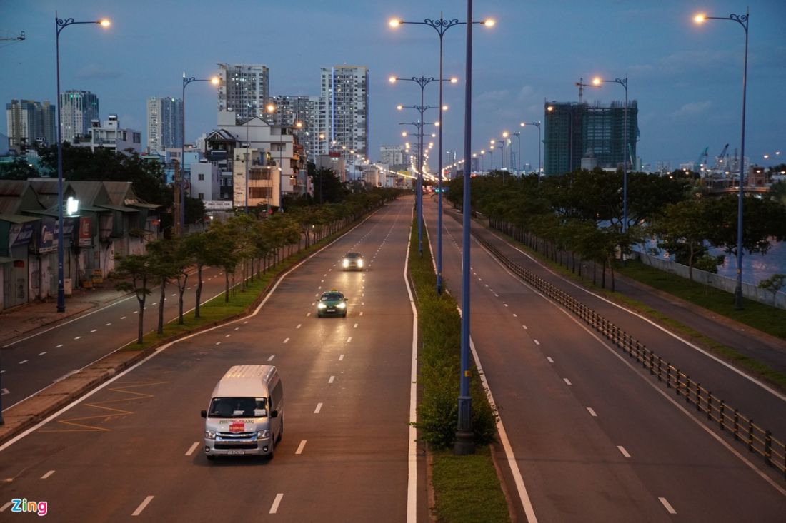 Xa lộ Hà Nội vắng vẻ sau 18h. Trước khi thành phố tăng cường các biện pháp hạn chế người dân ra đường, tuyến đường này vẫn có lượng xe cộ qua lại khá nhiều, nhất là vào khung giờ cao điểm.