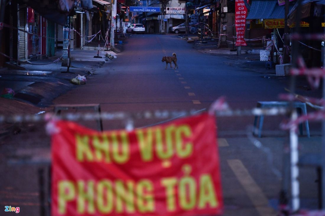 Đường Ngô Tất Tố lúc 18h30. Tuyến đường này đang bị phong tỏa để chống dịch. Theo quy định, những người không bị hạn chế thời gian ra đường gồm: Lực lượng phòng chống dịch; công nhân vệ sinh môi trường, xử lý sự cố; người điều khiển phương tiện vận chuyển hàng thiết yếu, đưa đón công nhân…