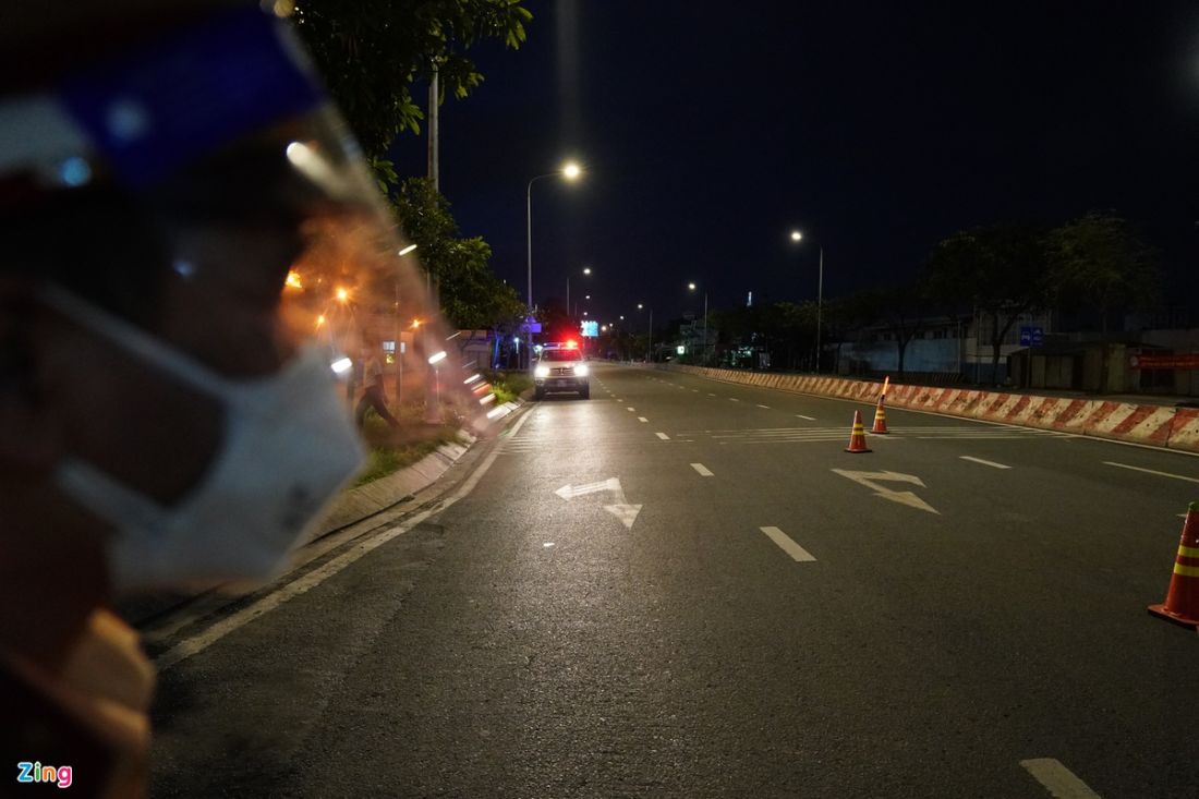 Trên tuyến đường Nguyễn Hữu Thọ (quận 7), lực lượng chức năng chốt chặn và kiểm soát người dân qua lại sau 18h. Tại đây, cán bộ kiểm soát liên tục tuyên truyền và nhắc nhở người dân thực hiện nghiêm chỉ đạo của thành phố.