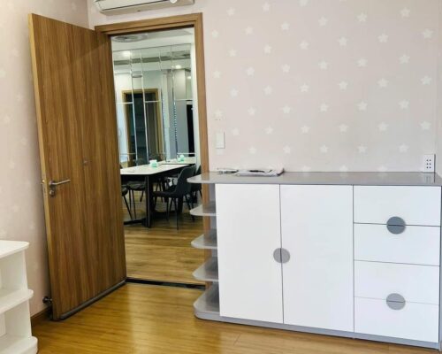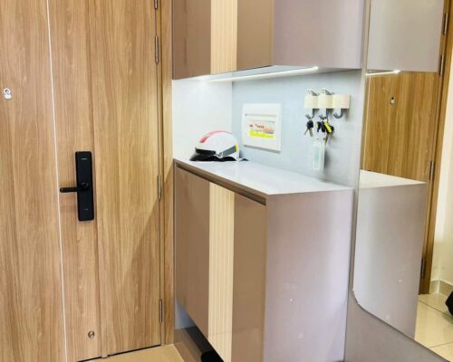 - Khu bếp nhỏ đầy đủ tiện nghi : Bếp từ, tủ lạnh, máy hút mùi, bồn rửa chén, giúp bạn dễ dàng chuẩn bị những bữa ăn ngon tại nhà.