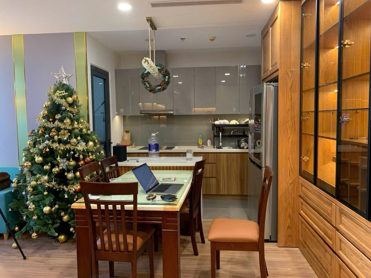 • Khu bếp nhỏ đầy đủ tiện nghi : Bếp từ, tủ lạnh, máy hút mùi, bồn rửa chén và các dụng cụ nấu ăn cơ bản, giúp bạn dễ dàng chuẩn bị những bữa ăn ngon tại nhà.