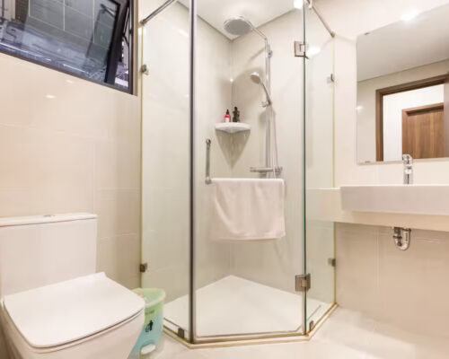 • Khu vực vệ sinh khép kín : Thiết bị vệ sinh cao cấp, máy nước nóng lạnh, đồ dùng cá nhân đầy đủ.