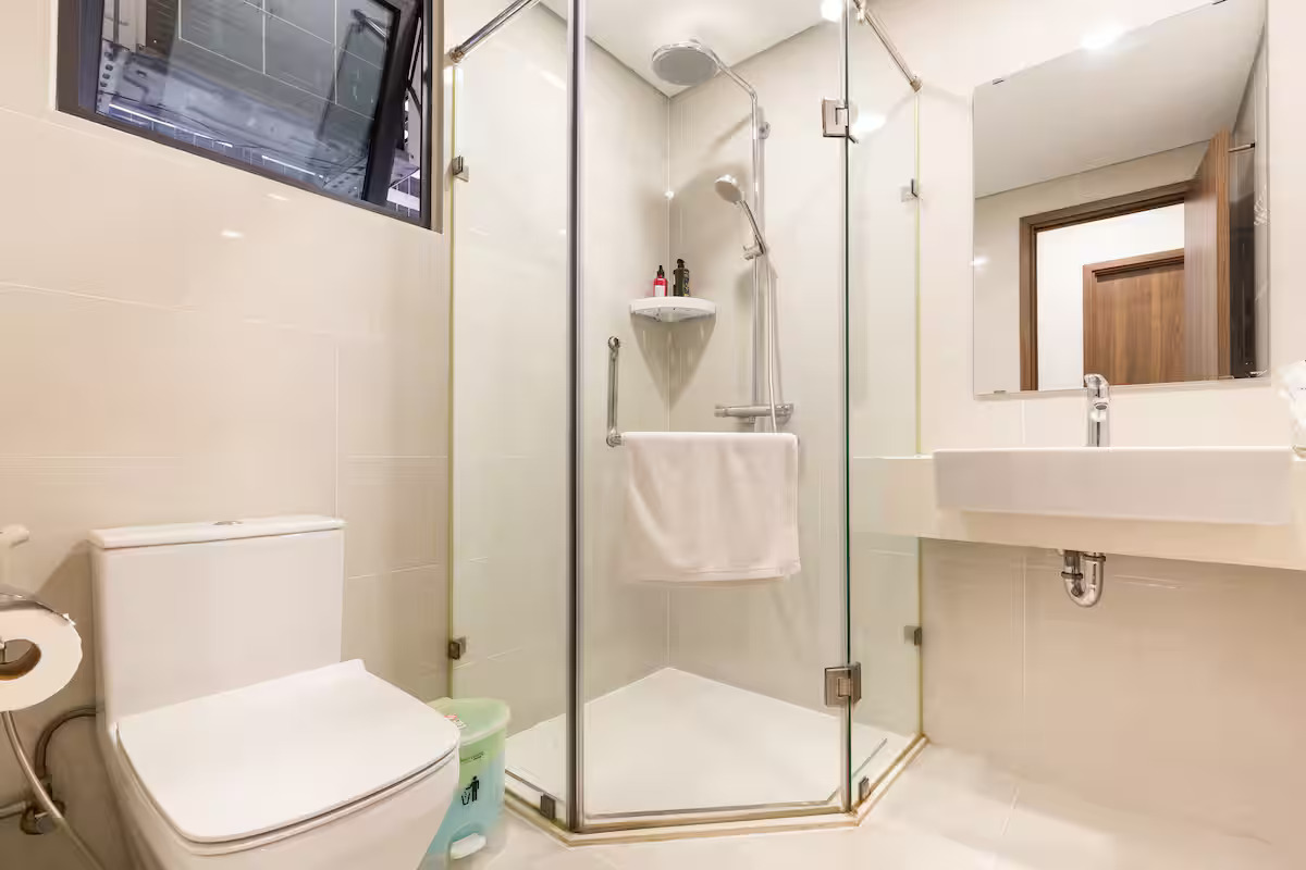 • Khu vực vệ sinh khép kín : Thiết bị vệ sinh cao cấp, máy nước nóng lạnh, đồ dùng cá nhân đầy đủ.