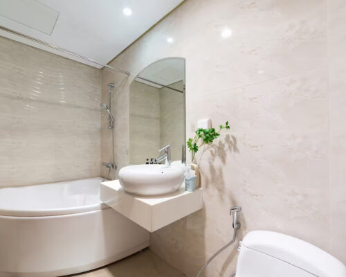 • Khu vực vệ sinh khép kín : Thiết bị vệ sinh cao cấp, máy nước nóng lạnh, đồ dùng cá nhân đầy đủ.