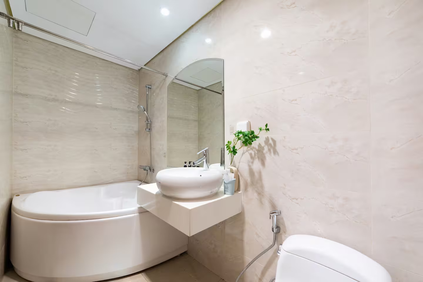 • Khu vực vệ sinh khép kín : Thiết bị vệ sinh cao cấp, máy nước nóng lạnh, đồ dùng cá nhân đầy đủ.