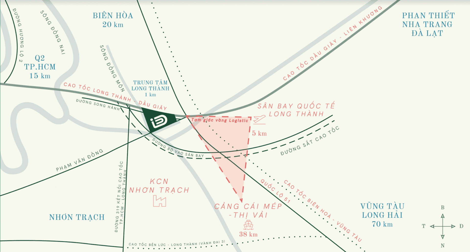 Vị trí Dự án Khu đô thị ID Junction Đồng Nai tọa lạc tại đường Phạm Văn Đồng, ngay trung tâm thị trấn Long Thành, nằm cạnh khu dân cư hiện hữu thuộc huyện Long Thành, tỉnh Đồng Nai. Dự án nằm ngay giao điểm của những tuyến giao thông huyết mạch là Quốc lộ 51 và Cao tốc Hồ Chí Minh – Long Thành – Dầu Giây, cách Vincom Long Thành chỉ 1km, cách sân bay quốc tế Long Thành chỉ 5km, cách Cảng nước sâu Thị Vải – Cái Mép chỉ 38km với tiềm năng hình thành tam giác vàng dịch vụ logistic của Miền Nam. Thông qua cao tốc, cư dân ID Junction Long Thành có thể tiếp cận Quận 2 TP HCM chỉ từ 20 phút.