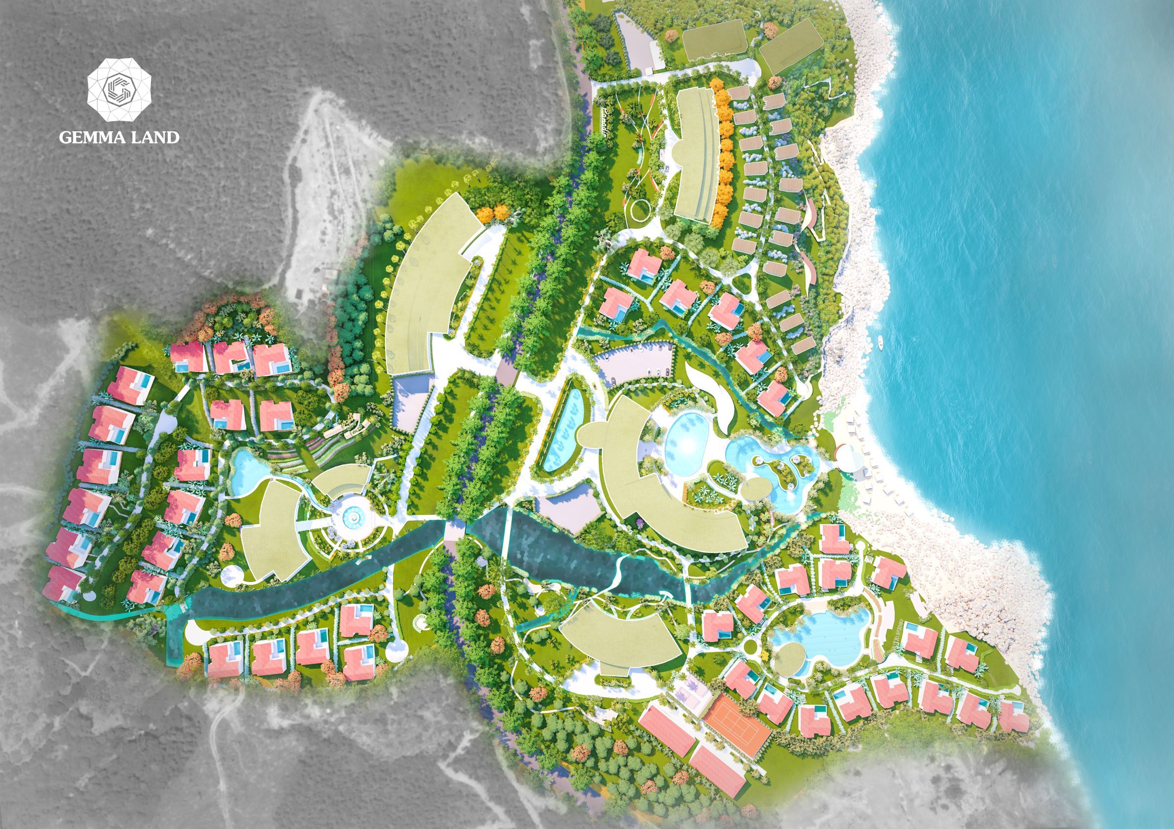 • Tổng diện tích quy hoạch: 124 ha (1.129.583,4 m2, Trong đó: Shophouse chiếm 123,225.70 m2, thương mại chiếm 24,116.90 m2, khách sạn chiếm 44,139.70 m2, biệt thự vườn chiếm 107,079.00 m2, biệt thự hồ bơi chiếm 170,619.00 m2, condotel chiếm 114,840.00 m2 )