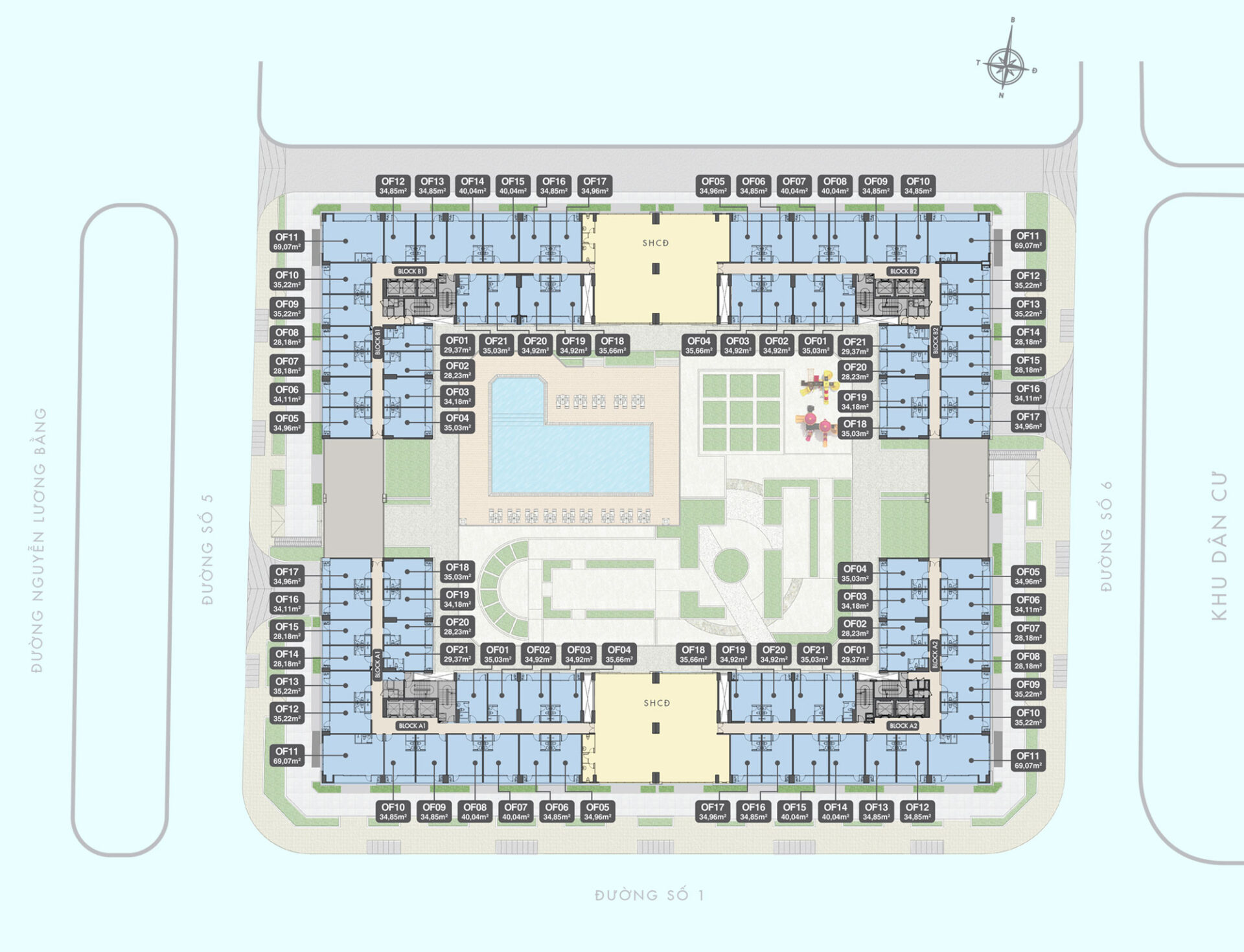 Số căn hộ:1.008 căn (diện tích 50,53 – 75,59m2)