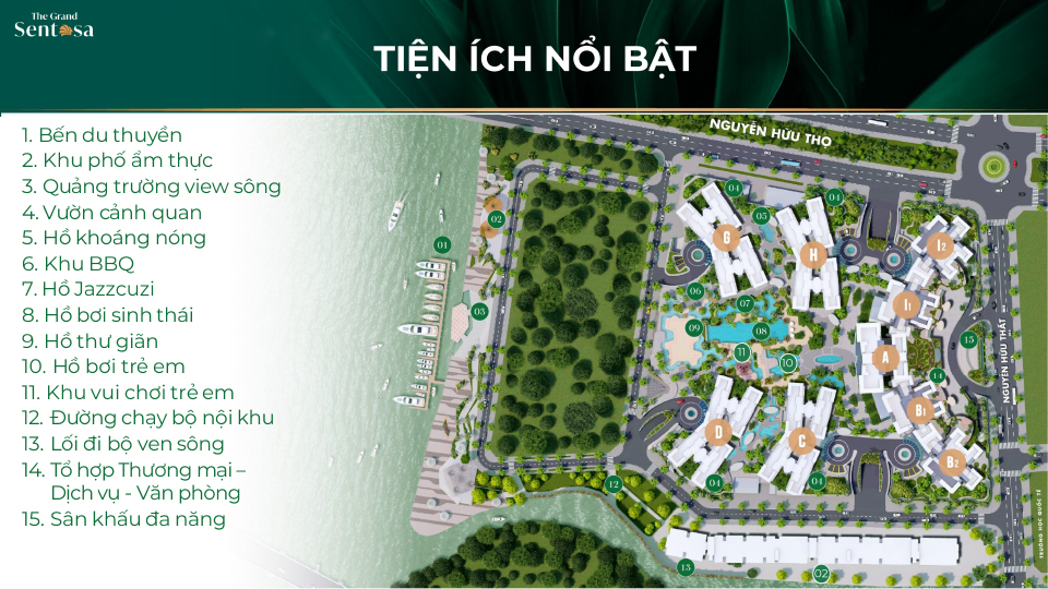 Tiện ích dự án căn hộ The Grand Sentosa Nhà Bè chủ đầu tư luôn trau chuốt tâm huyết và tỉ mỉ bố trí với hàng loạt các tiện ích nội khu với mong muốn mang lại cho cư dân khi sinh sống và làm việc tại đây có cuộc sống chất lượng đầy đủ nhất: Quảng trường nhạc nước lớn nhất và hiện đại nhất TPHCM, trường học, trung tâm thương mại đẳng cấp 5 sao, hồ bơi tràn bờ, khu vui chơi giải trí đẳng cấp quốc tế, quản trường riêng biệt dành cho dự án, và còn rất nhiều dịch vụ khác dành cho khách hàng.