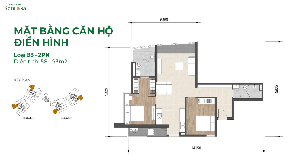 Diện tích từ 48m2 – 143 m2 có thiết kế từ 1PN-3PN.