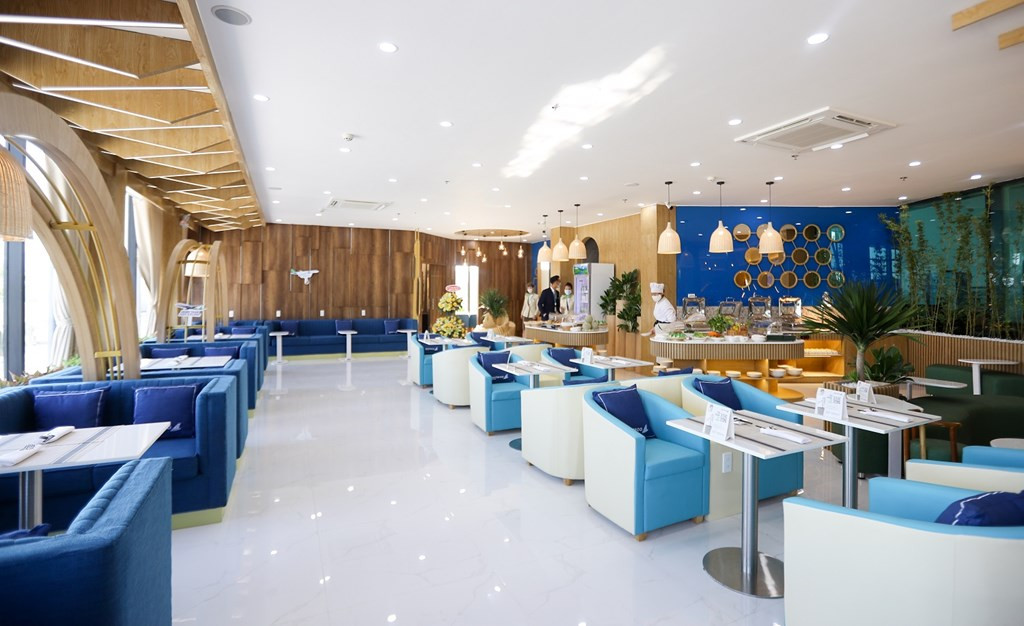 Có diện tích 250m2, Phòng chờ được phân chia thành nhiều phân khu chức năng như khu vực nghỉ ngơi, quầy bar/buffet, khu vực làm việc, phòng riêng tiếp khách VIP,… đáp ứng đa dạng nhu cầu của hành khách.
