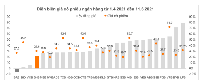 Ngân hàng này cho biết, từ đầu năm, cổ phiếu SHB đã tăng gấp 2 lần, đang ở mức 29.800 đồng một cổ phiếu trong phiên giao dịch ngày 11/6. Theo SHB, đà tăng của cổ phiếu không chỉ liên quan đến sóng tăng của ngành ngân hàng mà còn do kết quả kinh doanh vượt trội của SHB trong quý I.
