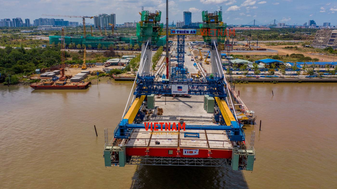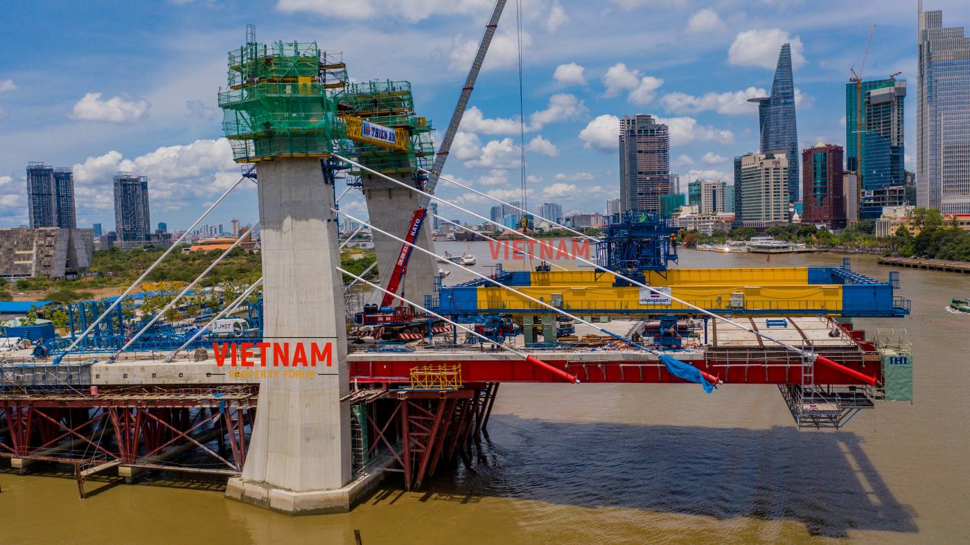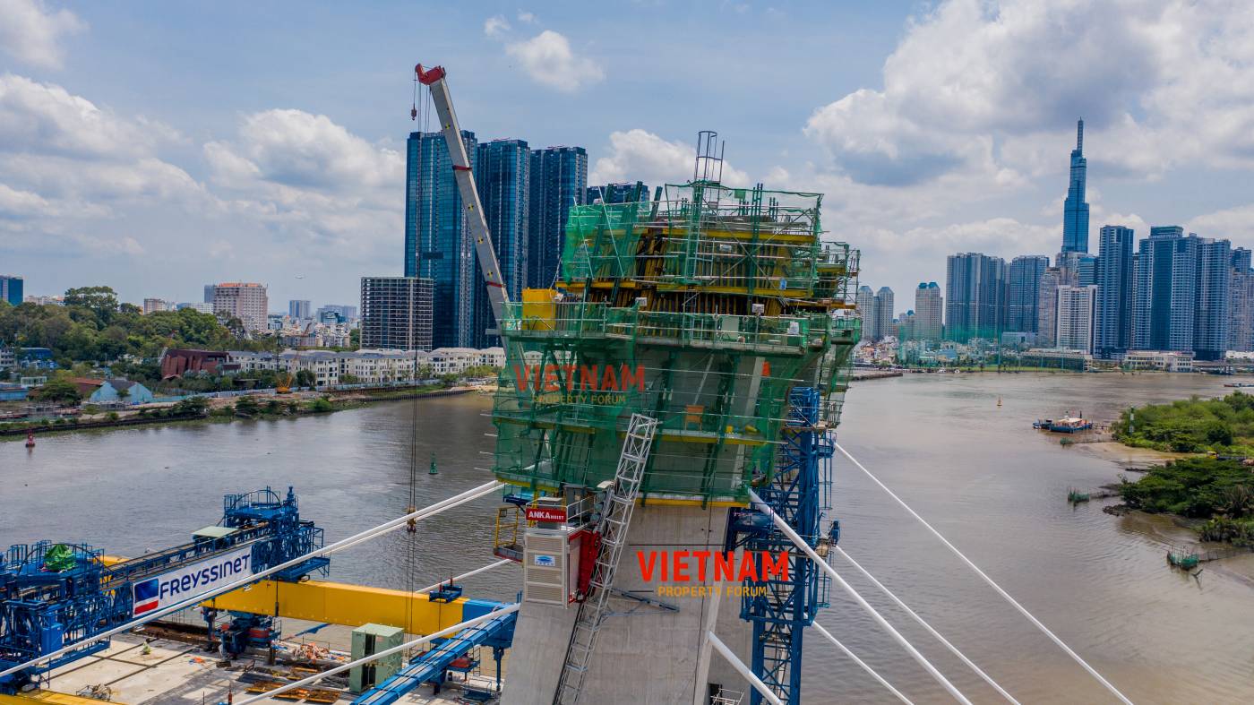 Cầu Thủ Thiêm 2 dài gần 1,5 km, vượt sông Sài Gòn nối liền trung tâm quận 1 với Khu đô thị mới Thủ Thiêm, quận 2. Cầu được thiết kế theo kiểu dây văng với trụ tháp chính có hình dáng kiến trúc cầu Rồng cao 113 m. Dự kiến cuối năm nay, cây cầu có thể được hợp long, đi vào sử dụng. Theo Ban quản lý Dự án, các nhà thầu vừa thi công hoàn tất đợt căng sợi cáp dây văng thứ 3, như vậy tính đến nay, tổng cộng đã có 12/56 sợi cáo dây văng đã được định vị vào trụ cầu Thủ Thiêm phía Quận 2.